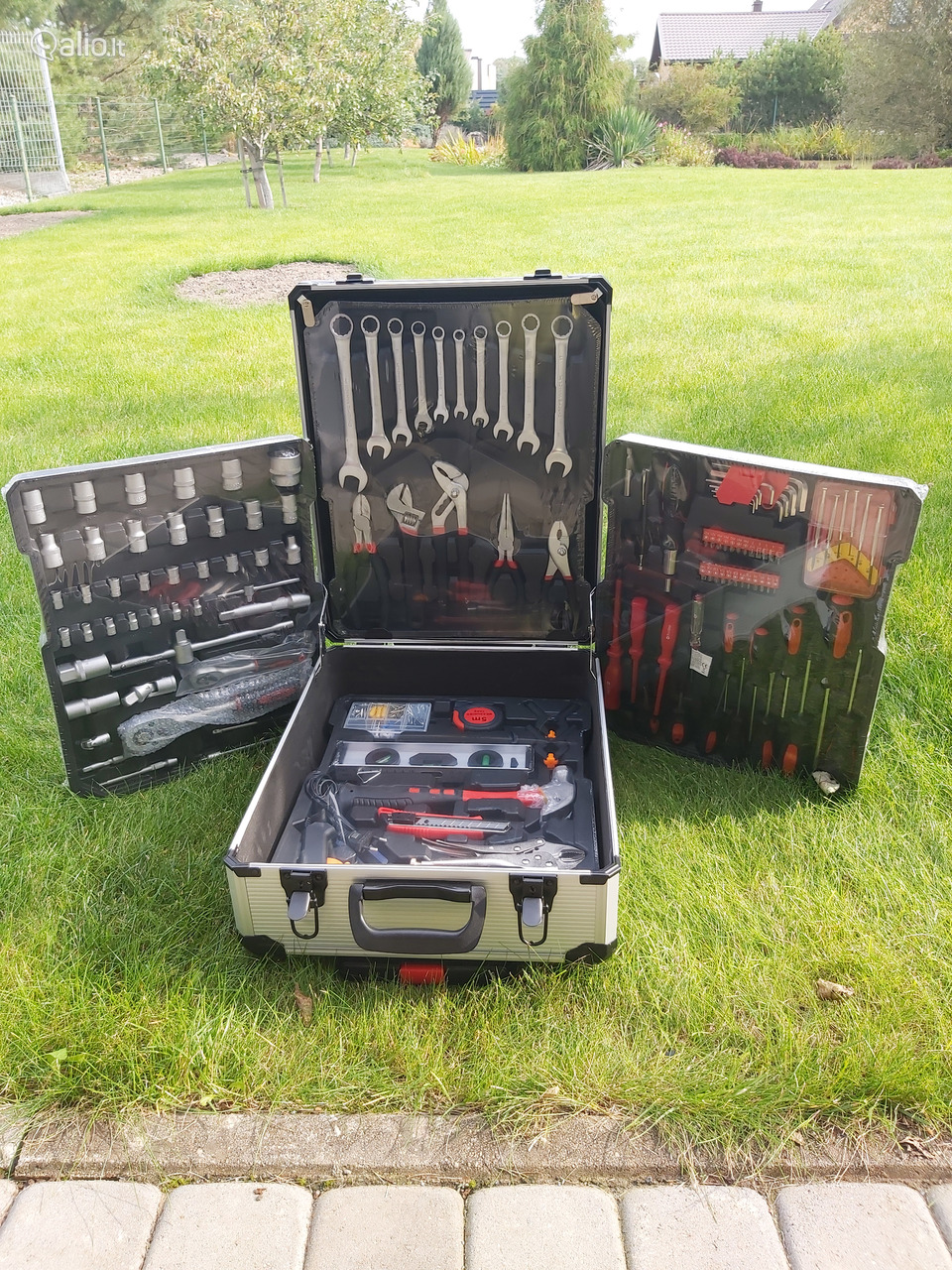 Naujas, 187 dalys, atsuktuvai, terkšlės, kilpiniai raktai, replės ir t. t. , viskas patogiame lagamine.