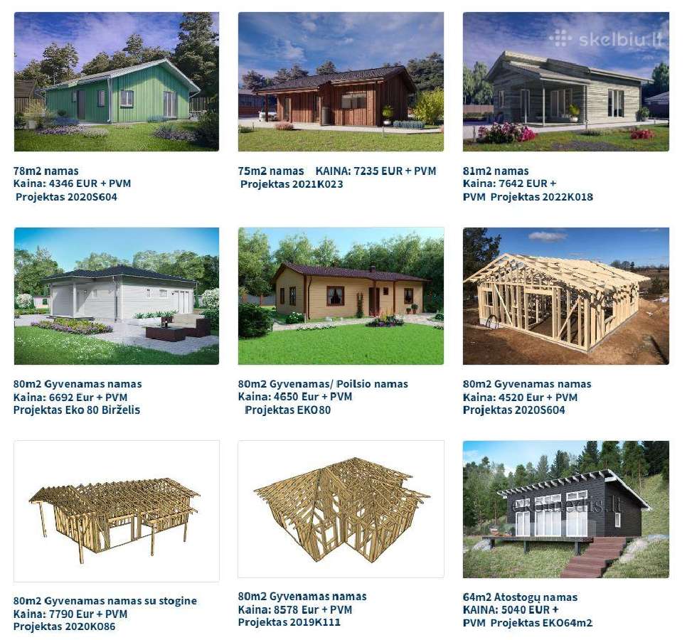 78m2 namas – 4340 Eur PVM. Supjautas Karkasas