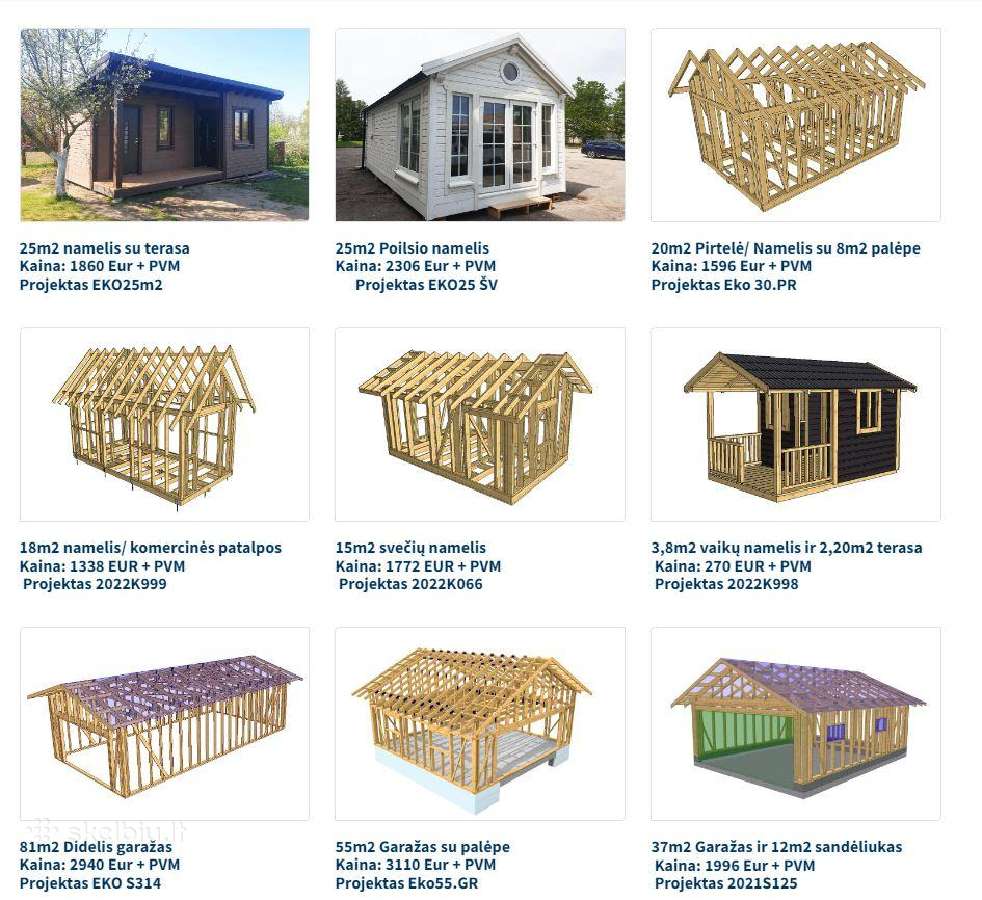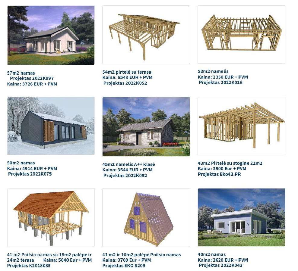 – išsamūs namo surinkimo brėžiniai (pagal kuriuos surinksite karkasą, net neturėdami didelės statybų patirties)
