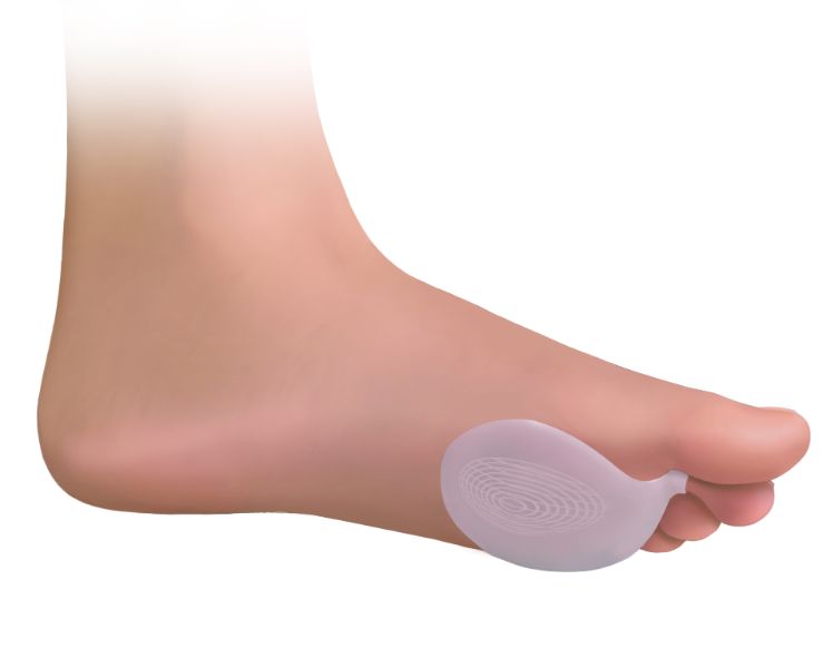 Gelinė pagalvėlė pado skersiniam skliautui su žiedu pirštui (Fresco F-00044) – padeda nuospaudų gyjimui, neleidžia kietėti odai, apsaugo arba sumažina skausmą pado srityje, mažina nuovargį ir trintį. Sugeria atatranką atsirandančia vaikščiojimo metu. Atsparūs prakaitui, muilui, vandeniui, atitinka griežtus medicinos ir higienos reikalavimus. Pagaminta Ispanijoje.
