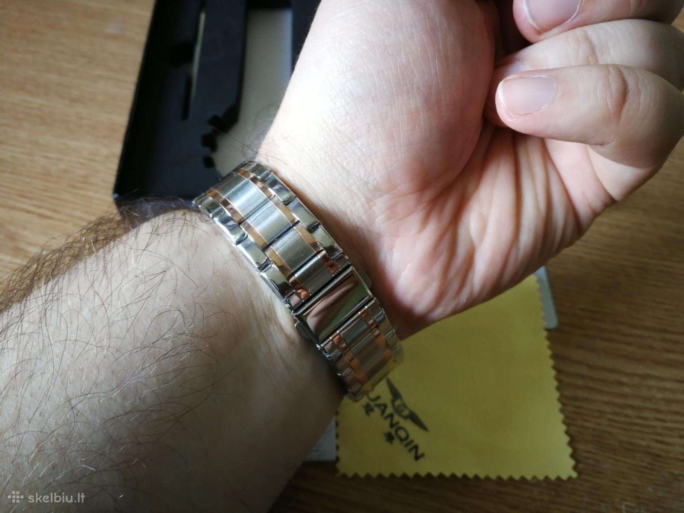 Parduodamas gražus, išskirtinis aukso+sidabro spalvų derinio firminėje dėžutėje mechaninis 21 akmens GUANQIN laikrodis. Ciferblato diametras 43mm storis 1.35cm, apyrankės ilgis 22cm plotis 22mm. Laikrodžio korpusas plieninis 316l plieno, apyrankė taip pat 316L plieno, stikliukas atsparus pabraižymams. Visos rodyklės veikia, rodo laiką, paros metą. Laikrodžio komplekte pats laikrodis, stiklų valymo servetėlė, tarptautinė garantinė korta, instrukcinė knygelė bei firminė dėžutė. Kaina tik 53€, bet negalutinė. Siuntimas į kitą miestą +2€