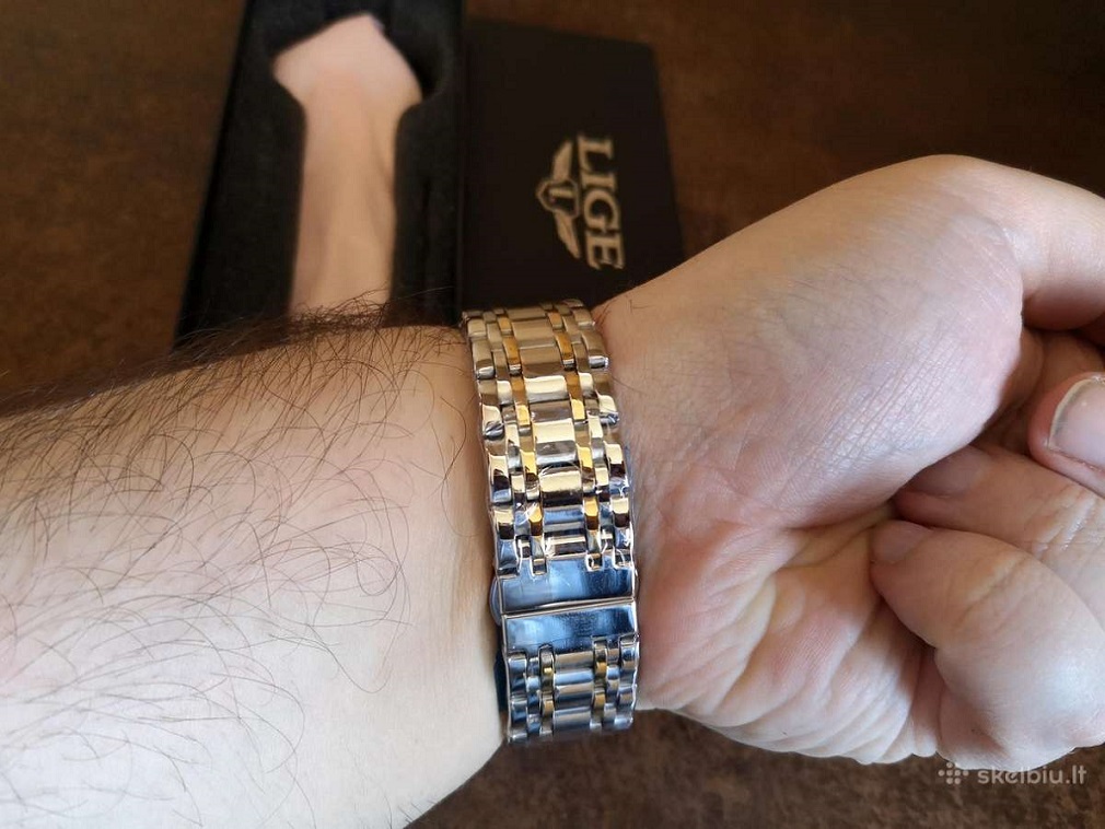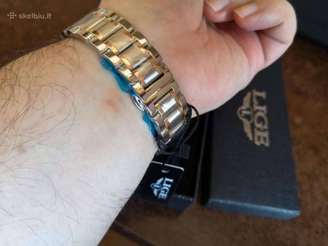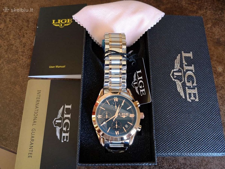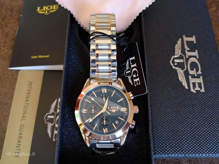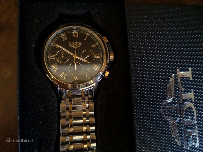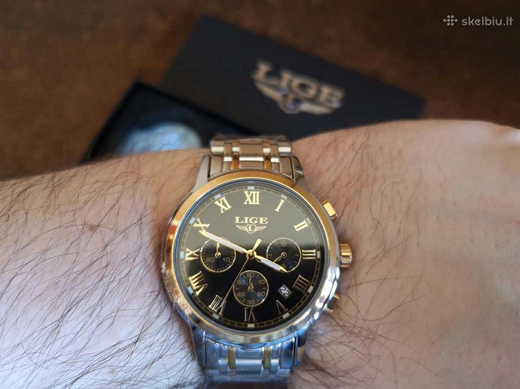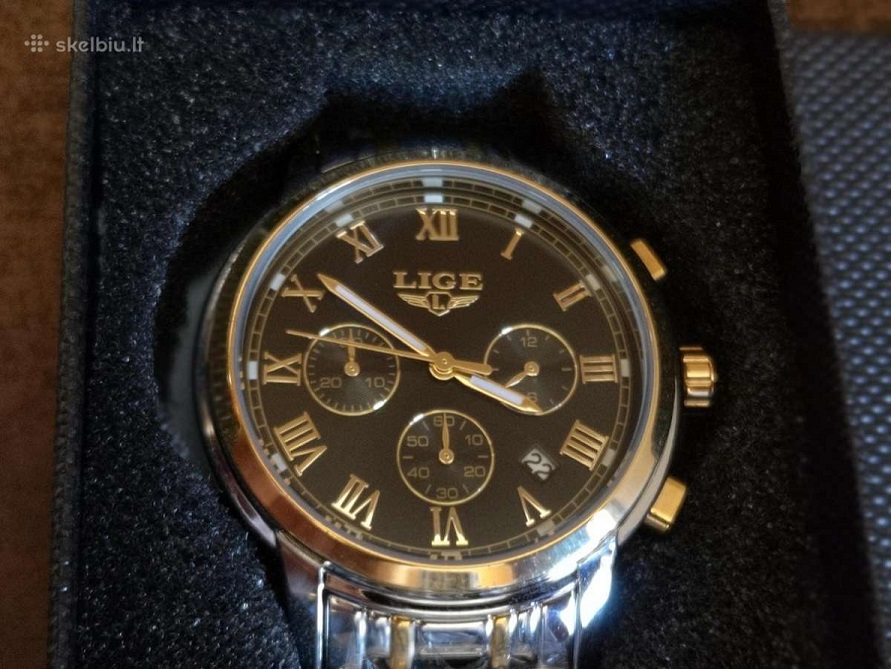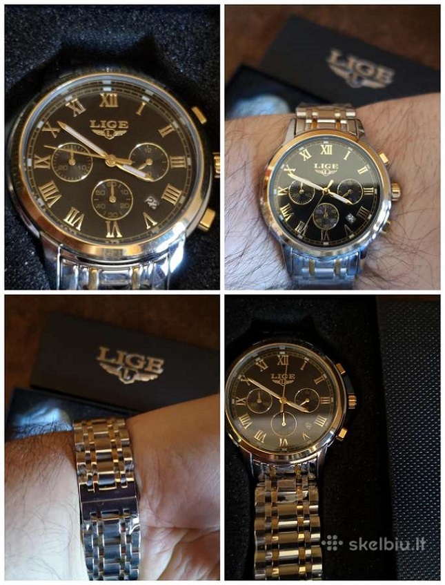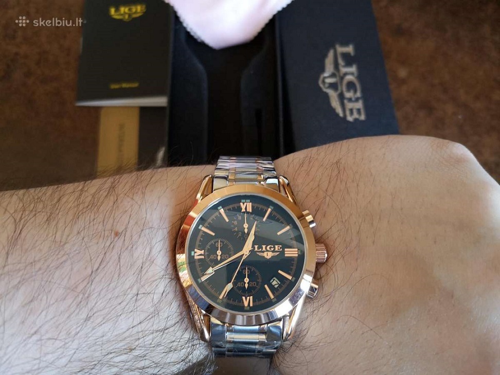 Parduodamas labai gražus aukso korpuso, juodo ciferblato visomis veikiančiomis rodyklėmis laikrodis LIGE. Komplektacijoje firminė dėžutė, tarptautinė garantinė kortelė, instrukcinė knygelė, stiklo valymo servetėle ir pats laikrodis. Laikrodis ne tik puošnus, solidus bet ir su viduje tiksinčia japoniška „širdimi”. Atsparumas vandeniu 3ATM. Laikroduko kaina tik 49e, bet negalutinė ir derinama. Sintimas į kitą miestą +2e Bendrinti