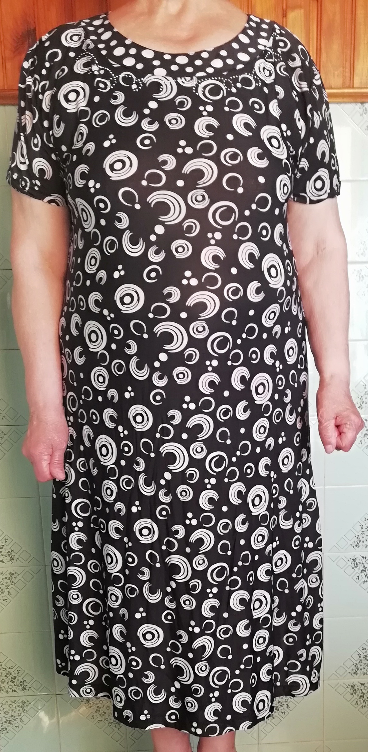 Moteriška marga , plona ir vėsi suknelė vasarai , trumpomis rankovėmis.