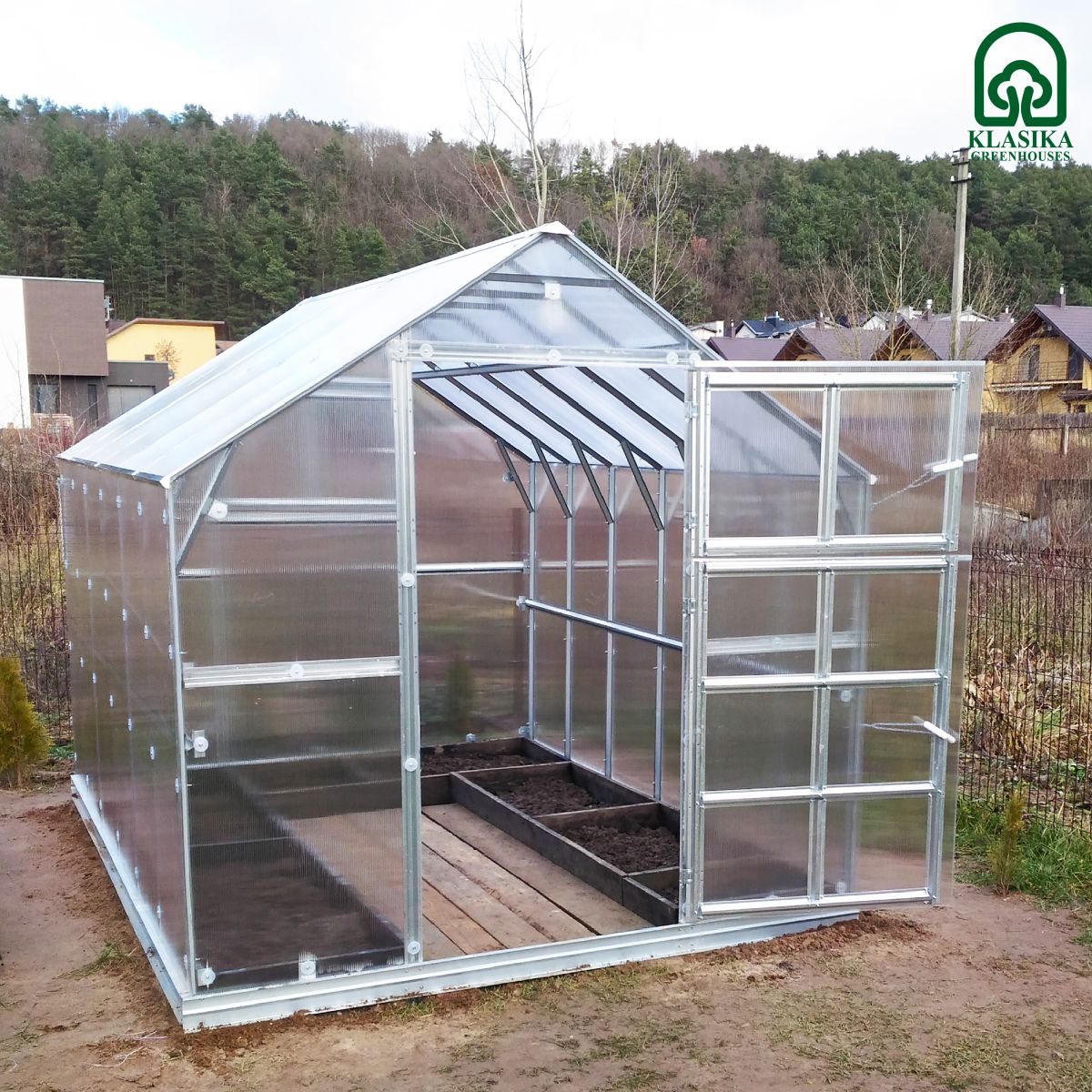 KLASIKA HOUSE – tai dvišlaitis, namelio formos, kompaktiškas šiltnamis, prisitaikantis prie kiekvieno kliento poreikių. Tinkantis auginti įvairias kultūras. Tokio tipo šiltnamyje galima optimaliai išnaudoti visą jo plotą.