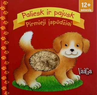Paliesk, koks švelnus šuniuko kailis. Knygelė ugdo vaiko atidumą, lavina pirštukų miklumą ir skatina bendrauti.