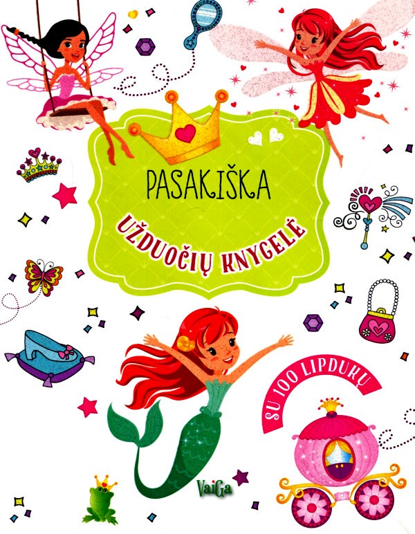 Daugybė įvairių užduočių, spalvinimo paveikslėlių ir 100 žavingų lipdukų.
