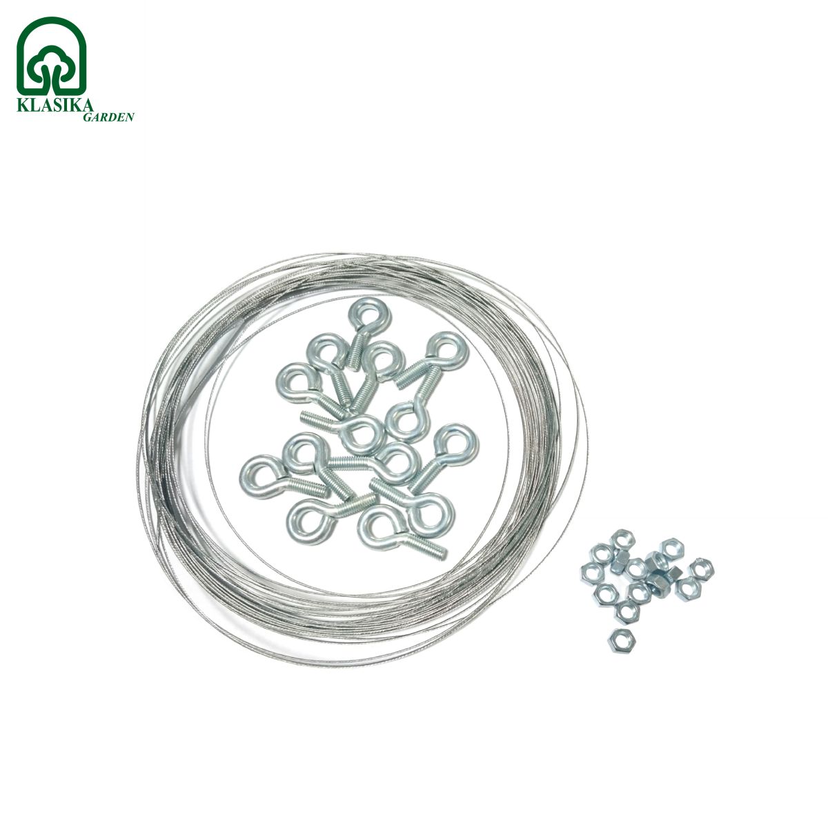 • Augalų parišimo komplektas. Sukomplektuota 2 šiltnamio lysvėms po 1 augalų eilę. Komplektą sudaro: kilputės ir cinkuotas troselis.