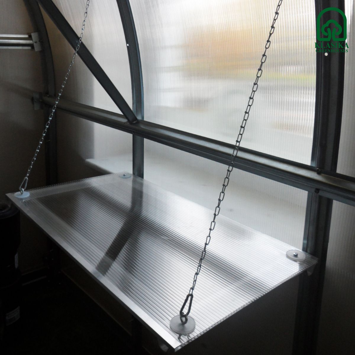 • Papildomas stoglangis / orlaidė, pritaikytas papildomam šiltnamio vėdinimui. Pagamintas iš cinkuoto metalo, dengtas polikarbonatine danga. Parduodamas jau surinktas, reikia tik prisitvirtinti prie paties šiltnamio. Pateikiama montavimo instrukcija. Galima pritaikyti automatinį atidarytuvą.