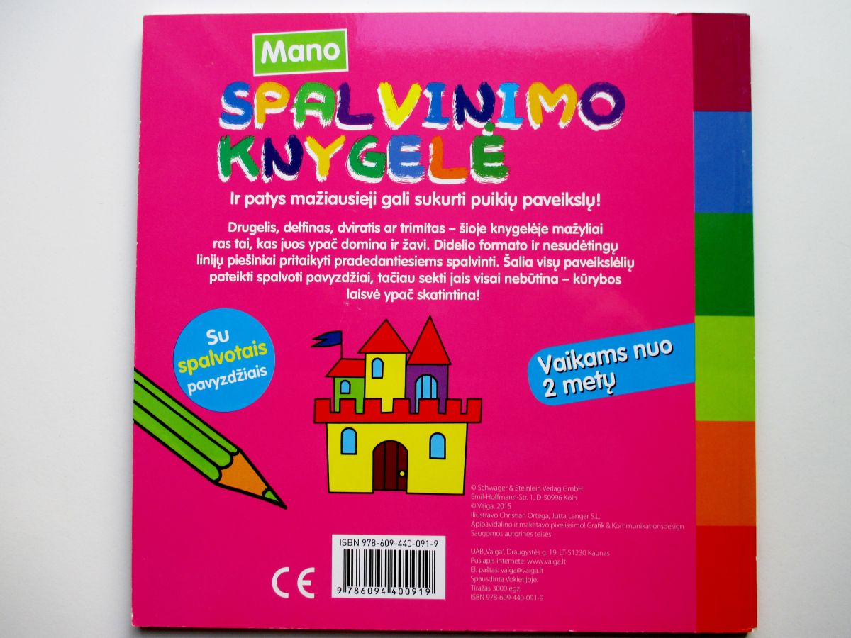 Mano spalvinimo knygelėje ir patys mažiausieji galės sukurti puikių paveikslų. Drugelis, delfinas, dviratis ar trimitas – šioje knygelėje mažyliai ras tai, kas juos ypač domina ir žavi.
