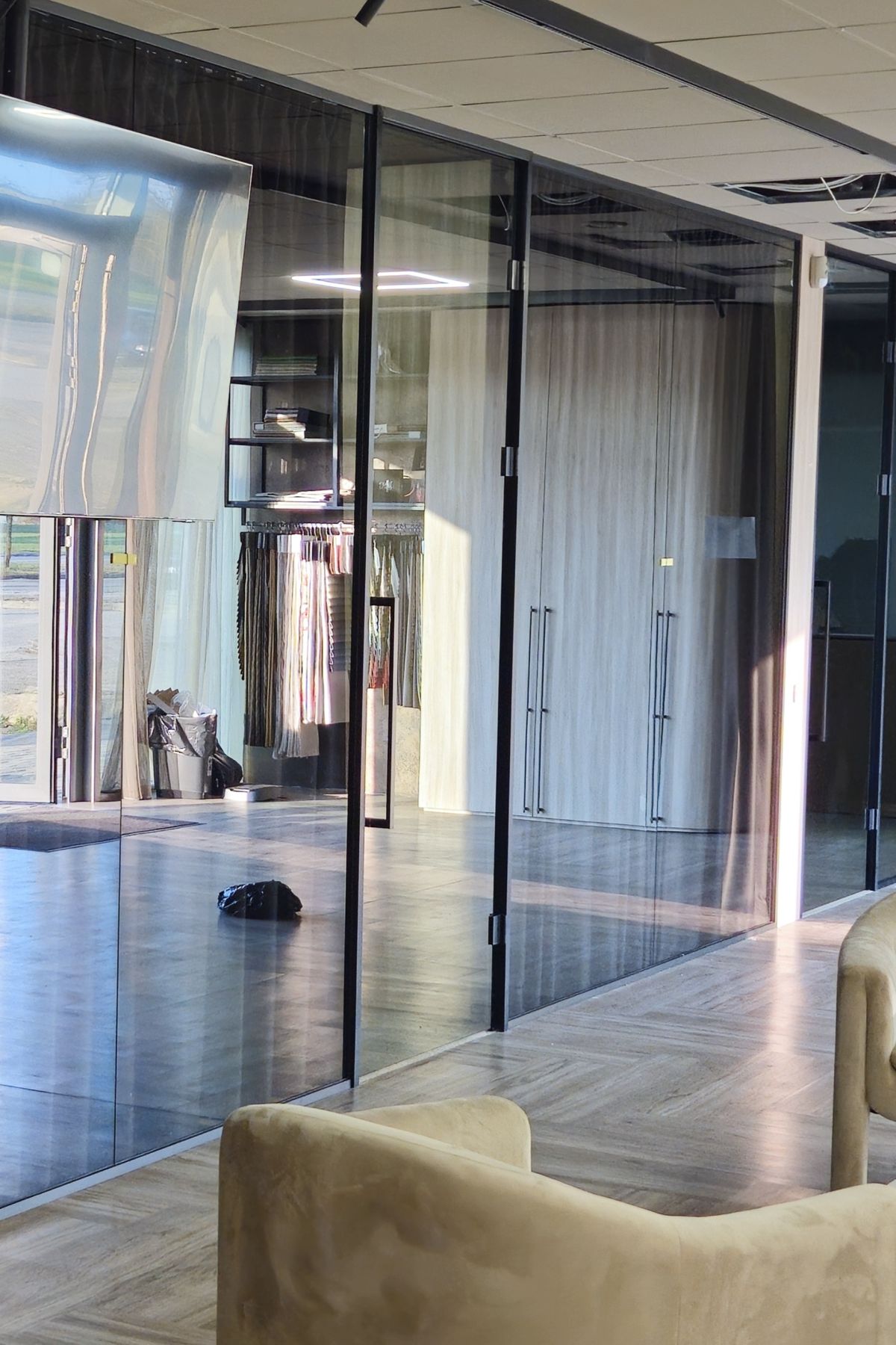 – Įvairias stiklo pertvaras komercinėms bei gyvenamojo būsto erdvėms;