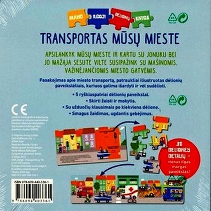„Mano dėlionių knygelė“ – tai serija mažiesiems skirtų knygelių, padedančių ugdyti suvokimą, bendravimą ir bendradarbiavimą. Šioje knygelėje vaikai ras, įvardys ir susipažins su transporto priemonėmis ir taip žaisdami plės žodyną.
