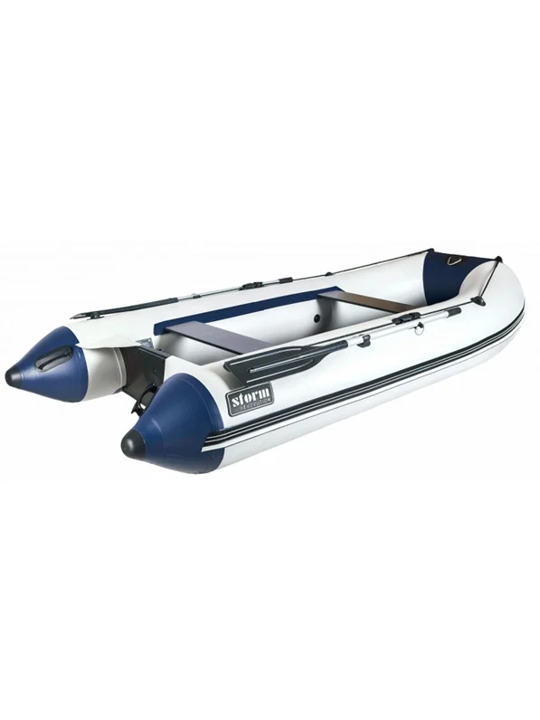 *Aqua Storm Stk 330, motorinė-kilinė valtis (330×150), jūrinės plokštės dugnas su stabilizatoriais, leistinas maksimalus keleivių su bagažu svoris 510 kg.,max.leistinas variklio galingumas 10 Ag., para-20 eurų;